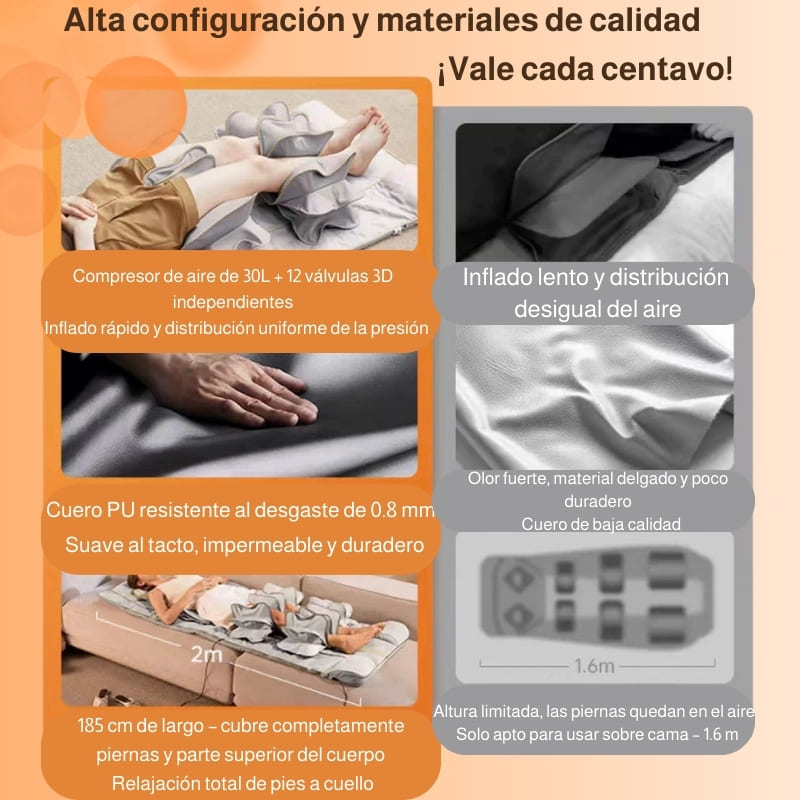 🔸 28 bolsas de aire flexibles para un masaje completo por presión de aire