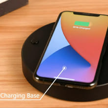 La base incluye un cargador Qi de 15W, compatible con la mayoría de los smartphones. Coloca tu teléfono sobre la base y recárgalo sin cables, mientras disfrutas del espectáculo de la luna flotante