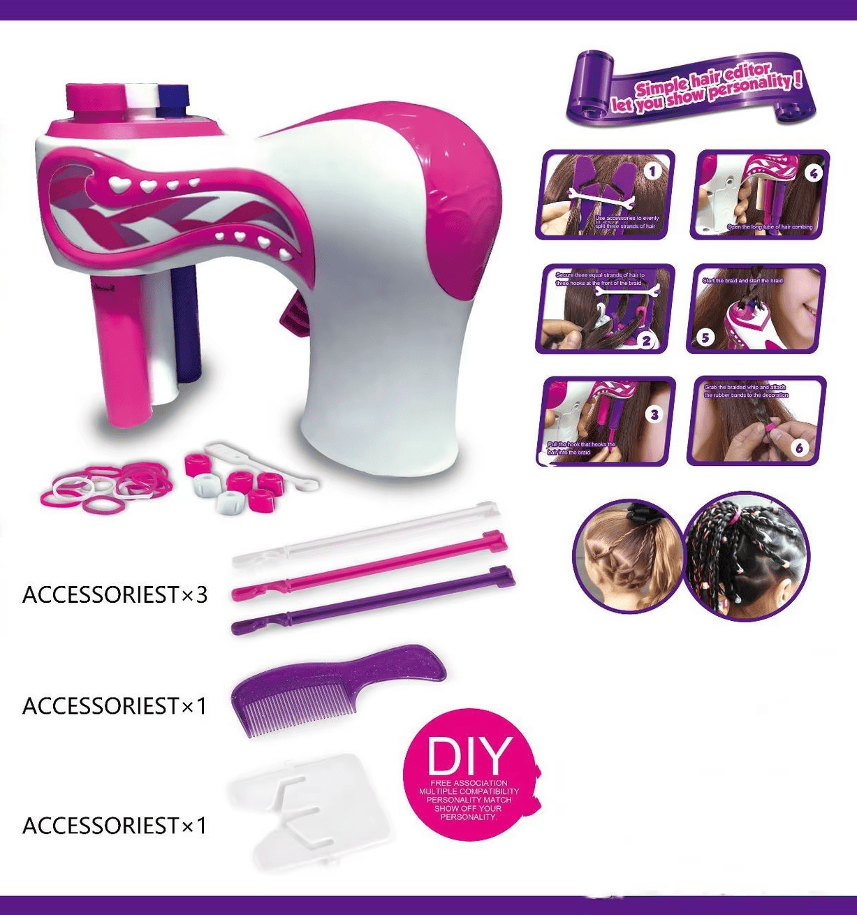 Transforma tu cabello en hermosas trenzas en solo unos pasos gracias a esta máquina automática para trenzar. Perfecta tanto para niñas como para mujeres, es la herramienta ideal para crear peinados originales, rápidos y sin esfuerzo.